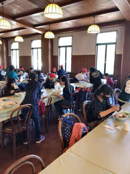 昼食を食べました。明治時代の洋食を思い浮かべながら、美味しくいただきました。ちょっぴり辛いのが、明治時代の大人のカレーライスなのかと思いました。