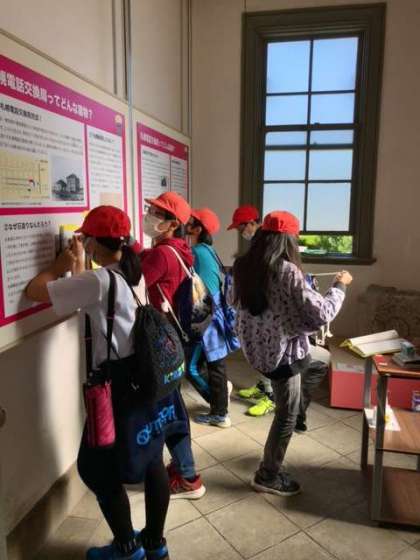 札幌電話交換局では、昔と今の通信について調べました。近くには、京都市電も走っていました。ボンネットバスも見ました。