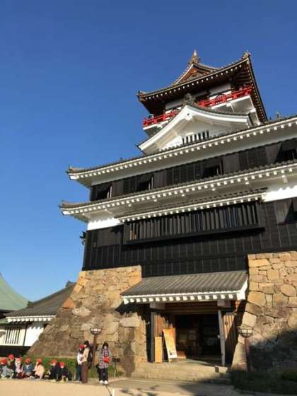 織田信長の居城、清洲城に到着しました。信長が祀られている建勲神社を想起し、すごく身近に感じます。天守閣が輝いていました。