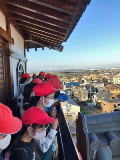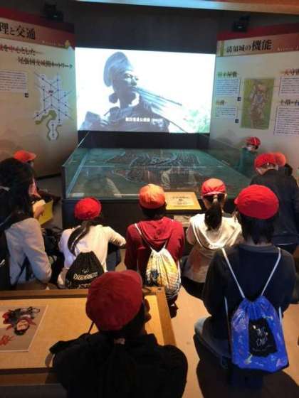 清洲城では、お城と尾張の歴史について、展示とビデオで学習しました。天守閣からは、濃尾平野が一望できました。金の鯱が飾られていました。