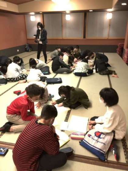 1日目の締め括りに、「振り返りタイム」を行いました。初めに、各班で今日の活動を振り返りました。次に、全体ミーティングで交流しました。最後に、明日の予定を確認しました。明日が待ち遠しいです。これから、就寝です。みなさん、おやすみなさい。