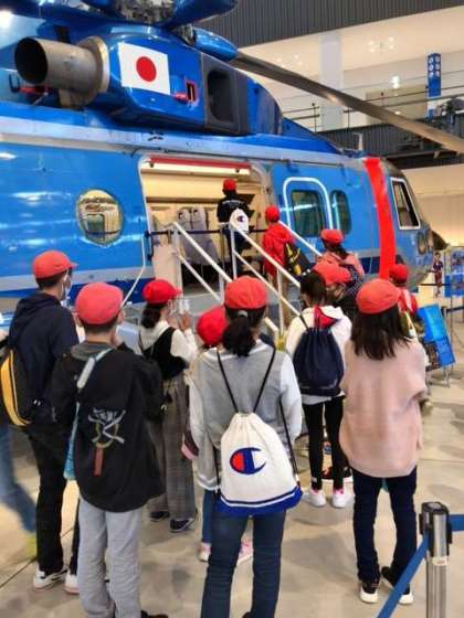 館内で、YS11やMRJについて学びました。3Dも見ました。日本の空で活躍した飛行機を目の当たりにしました。デッキで離陸する飛行機に手を振ると、パイロットが応えてくださいました。飛行機は山形に向けて出発しました。
