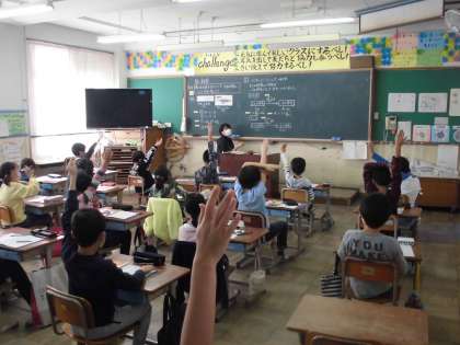 4年1組は,算数科の学習で「割合」の学習を行いました。動物の成長度合いを考えることを通して,単元の課題をつかんでいました。