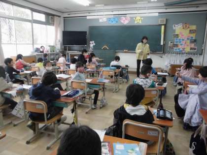 1年1組は,算数科で,たし算の復習プリントに挑戦しました。くり上がりのないたし算の問題でした。早く,正確にできるように解いていきました。みんなで答え合わせをしました。