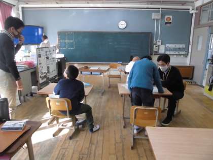 3組は,課題別学習で,国語科や外国語科を学習しました。宮沢賢治が著した「やまなし」の学習を振り返ったり,学んだアルファベットをプリントに書き込んだりしました。交流学習の勉強を生かしながら進めました。