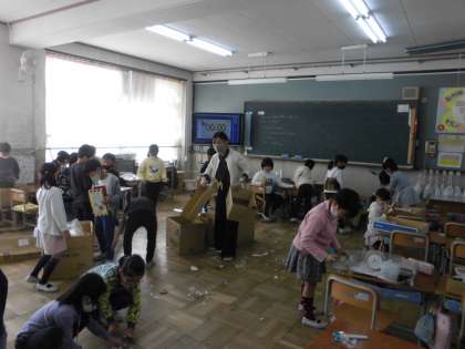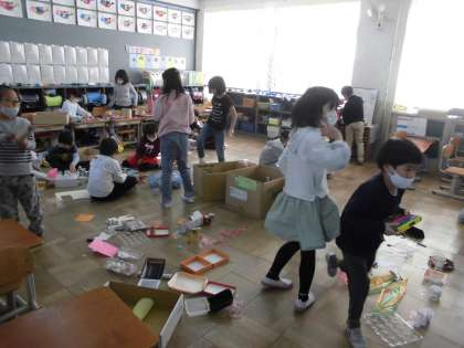 2組は,作ったおもちゃについて,さらに楽しく遊べるように工夫を加えました。友だちとどんなところをかえればよいか話し合いました。
