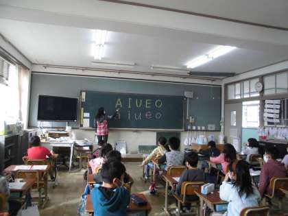 3年2組は,外国語活動で,ローマ字について学習しました。「アイウエオ」の母音の書き方を学びました。ワークシートを用いて,大文字,小文字の書き方を練習しました。