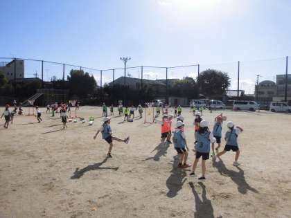 2年生は,学年みんなで「パスゲーム」を楽しみました。いつもとは違ったチームと対戦することで,活動への意欲がわいてきました。自分の動きやチームで頑張ることについて話し合い,楽しくゲームを進めました。それぞれのクラスで振り返りをしました。