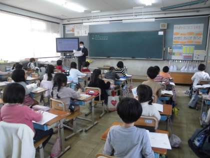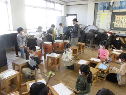 2年1組は,音楽科で,音楽づくりの勉強をしました。和太鼓で,祭りの様子をイメージしてリズムを考えました。「繰り返し」を上手に使って作っていきました。和太鼓を実際に叩いて,「やあっ!」という締めくくりの声を出しました。