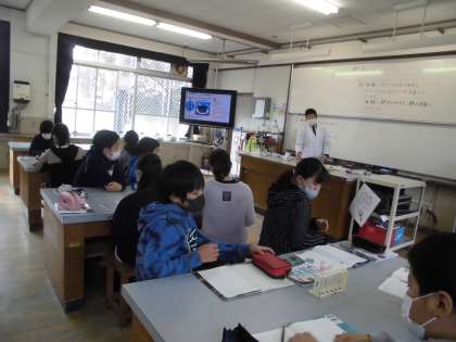6年1組は,理科で,「水溶液の性質」の単元を学習しました。塩酸に溶けたアルミニウムがどうなるのかを調べました。粉が沈むのではないか等の予想を立ててから,安全に留意しながら実験を進めました。