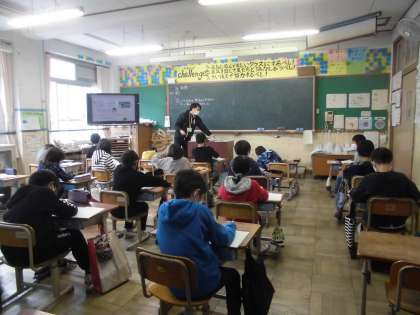 2組は,長方形や正方形の面積を求める公式が,直接使えない形について,どうすれば求められるのかを考え,意見を発表し合いました。