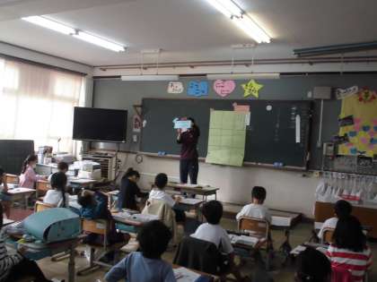 1年2組は,国語科で,「じどう車くらべ」の勉強をしました。自動車のつくりや仕事について読み取っていきました。表にまとめていくと,それぞれの特徴がわかってきました。よさや素晴らしさがあることに気付きました。