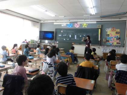 1年2組は,体育科で,「ゆっくりかけあし」と「なわとび」の学習をしました。同じペースで2分間走り続けるために大切なことを考えて活動しました。最後に,今日の学習を振り返りました。