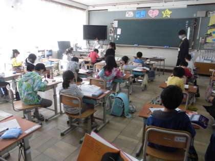 1年2組は,国語科で,復習プリントと読書に取り組みました。プリントでは,文章の中から,「いつ」のことなのかを読み取りました。その後,読みたい本を決めてじっくりと読んでいきました。