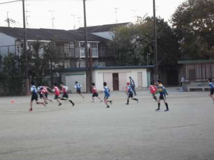 サッカー部は,身体慣らしに続いて,ドリブルで一人抜きをしてシュートに繋げる練習をしました。時には,フェイントを用いたり,スピードで相手を抜いたりする等,工夫をしました。最後に,ゲーム形式での練習に取り組みました。ボールのところに集まりすぎないように注意しました。