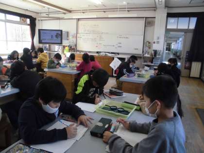 3年2組は,国語科で,ローマ字について学習しました。「a,i,u,e,o」を使ってできる「ame」などの言葉を綴りました。母音と子音の役割について,よくわかりました。