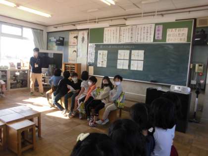 2年2組は,音楽科で,「かぼちゃ」という曲を学習しました。いろいろな楽器の音を重ねて演奏するというめあてに向かって活動しました。楽器の種類や演奏の仕方,拍の長さについて学びました。