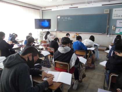 6年2組は,算数科で,比例と反比例の復習問題に取り組みました。題意を読み取り,まず表にかいて関係を調べました。次に,それをグラフに表しました。比例のグラフの特徴がわかりました。