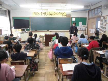 4年2組は,総合的な学習の時間に,「To the future」というテーマで学習しました。「10才のありがとう」や「生きてこそ」等,これからどんな学習をするのかを確かめました。