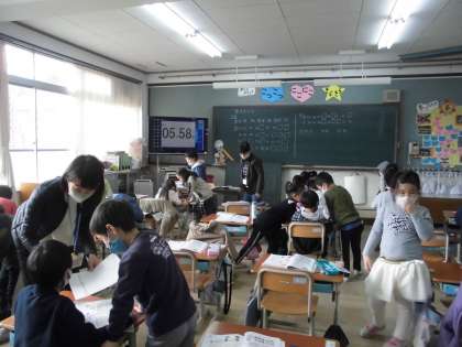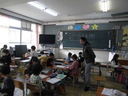 1年1組は,算数科で,大きな数の学習をしました。点数を比べたり,数を大きい順に並べたりする問題に挑戦しました。また,数の並び方を参考に,「あといくつで100になるか」考える問題も解きました。