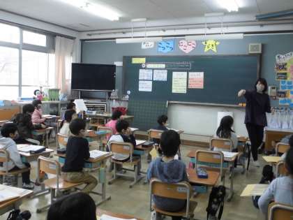 1年生は,両学級とも生活科で,「みんなの にこにこ だいさくせん」の学習をしました。家族が「にこにこ」するために,どんなことをどのようにしたのかを伝え合いました。「報告会をしよう」というめあてで行いました。話し方や聞き方のルールを確かめてから活動を行いました。