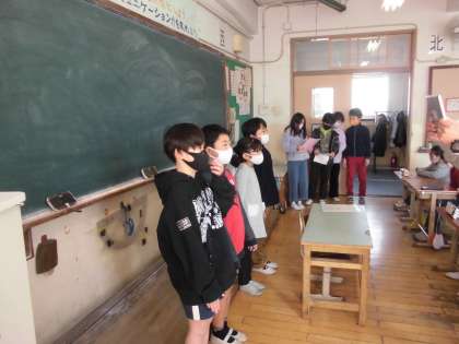6年生を送る会が行われました。本年度は,各教室をZOOMで結び実施されました。はじめの言葉に続いてのプログラムは,「クラス対抗,6年生NO1クイズ!」です。6年生にとって一番思い出に残っている行事やもっとも好きな給食,大好きな休み時間の遊びについて出題されました。各学級では,クイズの答えをみんなで相談して答えました。