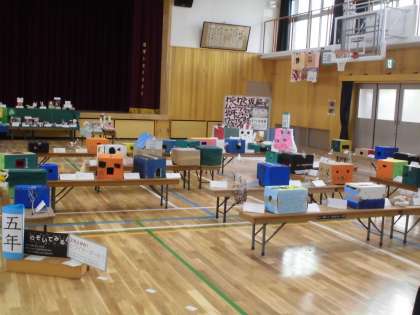 9日から,体育館で作品展を行っています。人物画,風景画,紙版画に木版画,立体作品など,各学年で工夫した展示が行われています。子どもたちの力作が並びます。一つ一つ鑑賞していくと,そのよさや心優しい気持ち,ダイナミックさなど,子どもたちの素晴らしさが伝わってきます。