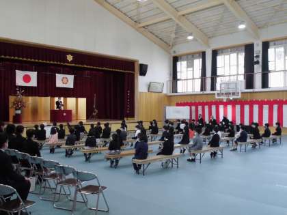 新しく56名の1年生を迎え,令和3年度入学式を行いました。入学式につきましても,新型コロナウイルスの感染拡大防止のため,座席位置を離し,縮小した形で執り行いました。1年生になって嬉しそうにしている子もいれば,少し緊張した様子の子もいる中,和やかな雰囲気で入学式が進みました。