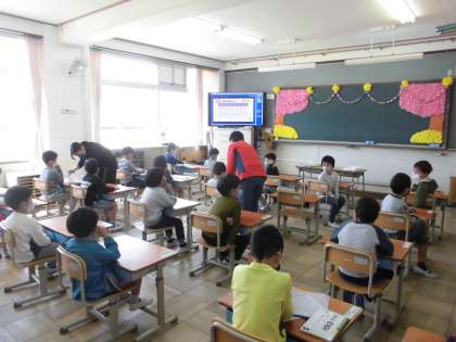 新年度5日目。1年生は,朝一番に教室での健康観察と連絡帳の確認が行われました。健康安全に留意して学校生活を送るために,大切な活動です。みんな元気な声で返事をしていました。