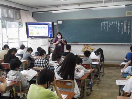 6年2組は,道徳で,「ぼくたちの学校」というお話を読みました。まず,紫野小学校のよさについてたくさん意見を出しました。学年問わず遊べること,給食が美味しいこと,あいさつができること,協力していること,元気なこと,掃除ができていること,みんな優しいこと等,たくさんでてきました。お話を読んで,さらに学校を好きになる気持ちが高まりました。