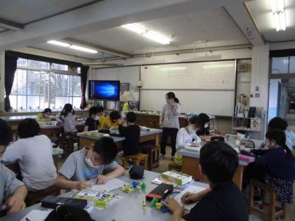 4年1組は,理科で,「電池のはたらき」について学習しました。送風機を動かしてみて,気が付いたことを発表しました。風の向きが人によって違うのはどうしてなのかを考えました。電池の「向き」との関係について実験で調べました。
