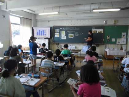 5年1組は,社会科で,低い土地のくらしについて学習しました。輪中に住む人々が,どのようにして水害から身を守ってきたのかについて調べました。「千本松原」のはたらきがよくわかりました。