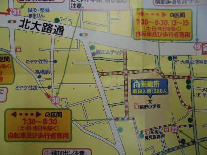 保護者の皆様に,登下校についてのお知らせとお願いを致します。以前,『令和3年 こども達の安心・安全 紫野小学校区マップ』を配付させて頂きました。そこにも記載されているように,紫野小学校の周りの道路は,【7:30〜8:30,13〜15(土・日・休日を除く)自転車及び歩行者専用】(許可車は除く)となっています。
