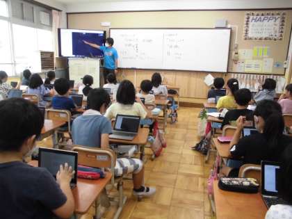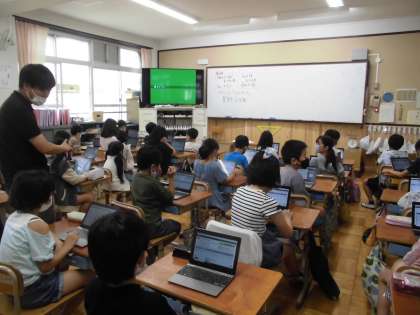3年生は,両学級とも,GIGA端末を使って,ミライシードのドリルパークに取り組みました。時間を決めて問題に挑戦したり,漢字や計算の復習をしたりしました。持ち帰り時のことを念頭において,使用手順や手書きの方法などについて確認しました。