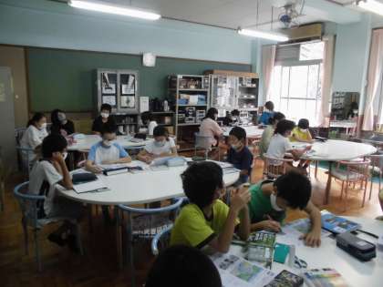5年1組は,理科で,「流れる水の働きと土地の変化」の単元を復習しました。山の中から平地へと流れる川の様子について,これまでの学習を想起しながら,問題にチャレンジしました。