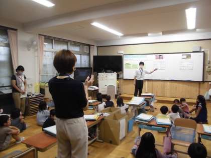 2年2組は,生活科で,「あそんで ためして くふうして」の単元を学習しました。ペットボトルの蓋やいろいろな形状の箱の特徴に着目して,遊びを工夫しました。蓋を並べて模様を作ったり,箱を高く積み上げたりして楽しく活動しました。