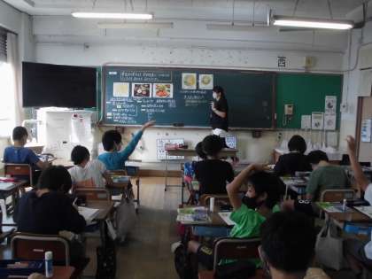 5年1組は,社会科で,食生活の変化が食料生産にどのような影響を与えているのかについて調べました。我が国の食料自給率のグラフや,1960年代と現在の食料生産のグラフをもとに,変化の理由について考えを交流しました。