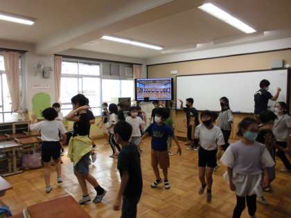 今回は,運動会が近づいて来ているということもあり,各教室で全校ダンスの練習を行いました。高学年が中心となり,下の学年の子たちに優しくダンスを教えている姿が微笑ましかったです。