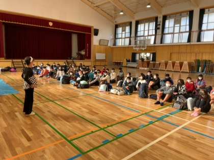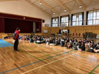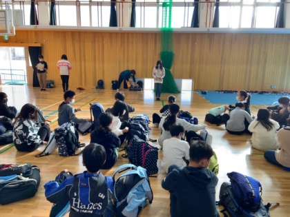 6年生は、今日から1泊2日で修学旅行に出かけます。出発式では、はじめの言葉、先生からの諸注意がありました。「よろしくお願いします!」の挨拶で、出発しました。