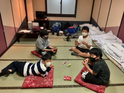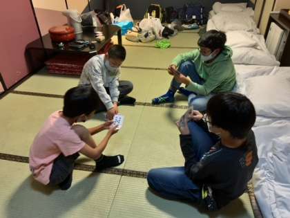入浴待ちの時間、各部屋では、友だちと話をしたり、トランプなどを楽しんだりしました。