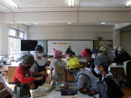 5年2組は,家庭科で,日本の伝統的な「だし作り」に挑戦しました。鰹と昆布を使って,じっくり煮出しました。よい香りとほんのりした甘みを感じるような「だし」ができました。