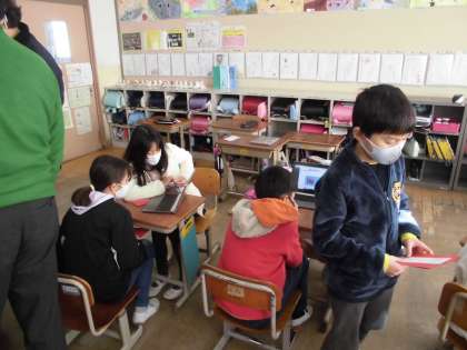 5年生は,外国語科で,標記の表現について学習しました。「各国の紹介」をテーマに,2か国について調べ,プレゼンテーションしました。聞き手は,「I want to go to ○○.」と答え,プレゼンテーターのサインとパスポートチケットを貰いました。各国の料理のことや施設について交流することができました。行ってみたくなりました。