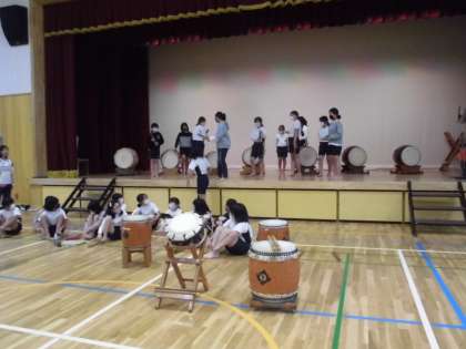 和太鼓部では,基本の演奏に加え,パートに分かれての練習を行いました。5,6年生のリードで,3,4年生も自信をもって演奏できるようになってきました。