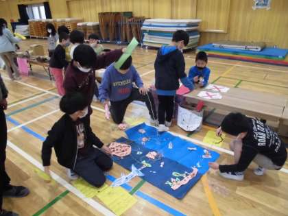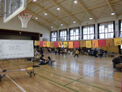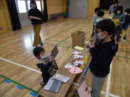 9日(木)の3・4時間目,体育館で1年生が,「秋のおもちゃフェスティバル」を行いました。生活科の学習の中で集めたどんぐりや松ぼっくりをもとに様々な物を作り,ブースごとに楽しいイベントを開催しました。