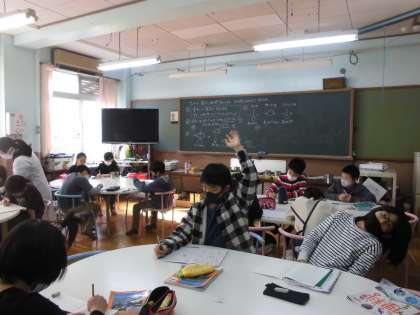 4年1組は,算数科で,「小数のわり算」のプリントに取り組みました。筆算の仕方や商を概数で表す方法を思い出しながら問題にチャレンジしました。