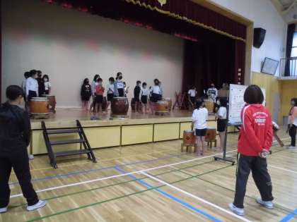和太鼓部では,基本の打ち方を練習した後で,「活動のめあて」が発表されました。その後,6年生のリードで,三宅太鼓を演奏しました。太鼓をたたく強さや移動の仕方に気を付けました。