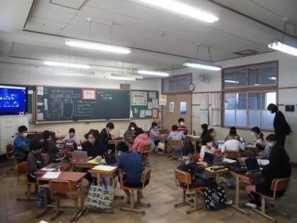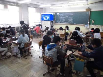 4年生は,教材「知ること+思いやり→できること」の中で,前回,リモートで北総合支援学校に通っている上中さんと交流したことをもとに,上中さんもみんなも楽しめる遊びを考えました。GIGA端末を活用し,「思いやり」が大切だということを思い出しながら,みんなが楽しめるルールを考えました。