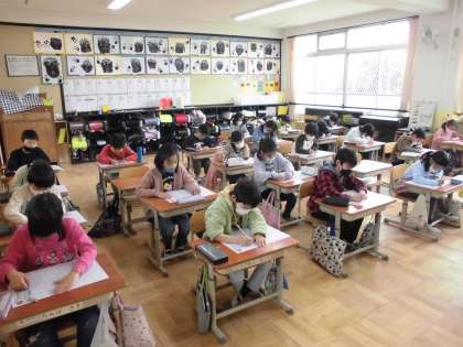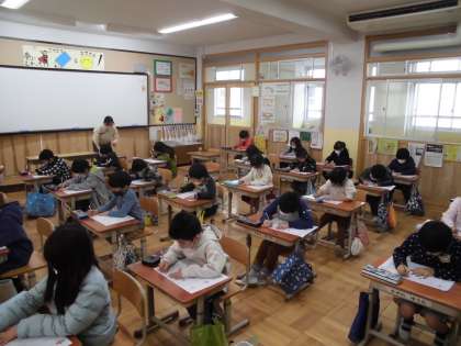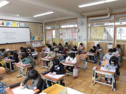 子ども達は,検定に至るまでに学習を積み重ね,問題にチャレンジしました。全学年,集中して取り組んでいました。写真は,1年生と2年生の様子です。