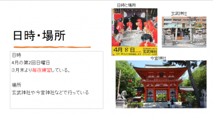 これから,玄武やすらい祭について紹介していきます。ぜひみてください!