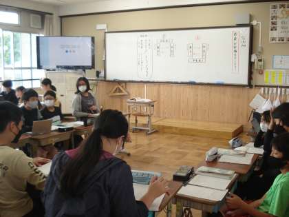 6年2組は,国語科で,テーマを決めて討論会をしました。テーマについて,肯定と否定の立場を明らかにし,その根拠を示しながら意見を述べました。友だちの考えを受け入れながら考えを発表しました。判定係が,両立場の意見を総合し,判定をしていきました。
